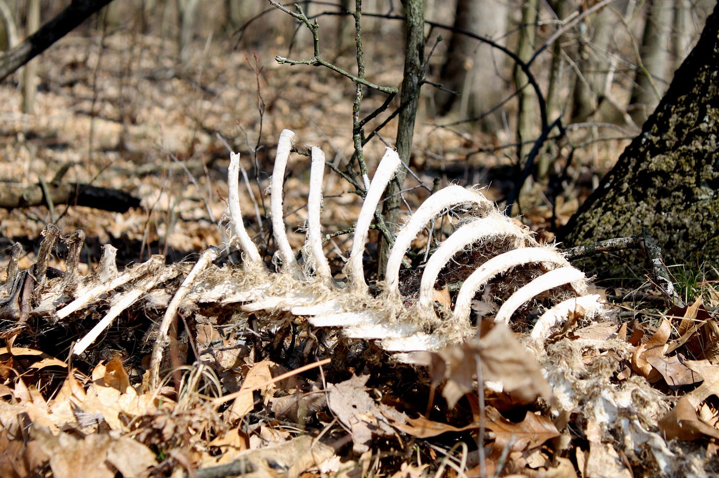 Another time, in late winter, when the snow had receded, I rounded a bend in the woods that I’d rounded just a few days earlier, when I noticed something gleaming white at the foot of a tree. I stepped closer. What was beckoning white when the snow was gone? Bleached bones rose from last year’s leaves: It was the rib cage of a deer long dead.